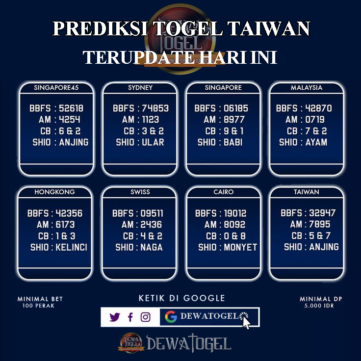 Prediksi Togel Taiwan – Selamat datang di dunia prediksi togel! Pada artikel kali ini, kita akan membahas bocoran angka togel Taiwan untuk hari Senin, 15 Desember 2025. Togel telah menjadi salah satu permainan yang digemari oleh banyak orang, dan dengan memahami pola serta strategi yang tepat, peluang Anda untuk menang bisa meningkat. Mari kita telusuri bersama beberapa angka jitu dan tips menarik yang mungkin bisa membantu Anda dalam meraih keberuntungan di pasaran togel Taiwan.